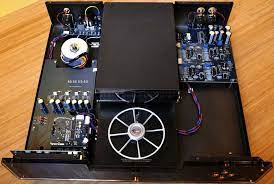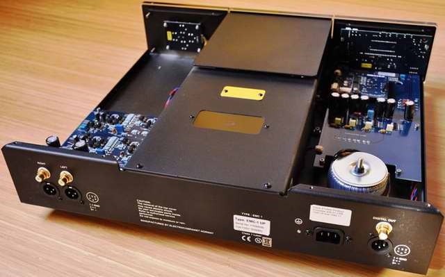 La circuitazione è completamente bilanciata e simmetrica con una alimentazione denominata FTT (Floating Transformer Technology), quella digitale e quella analogica sono completamente separate, a destra della meccanica troviamo l'unità di gestione delle uscite analogiche rca ed xlr, a sinistra il generoso alimentatore toroidale con l'elettronica di gestione della meccanica, delle uscite digitali ed ovviamente il dac.